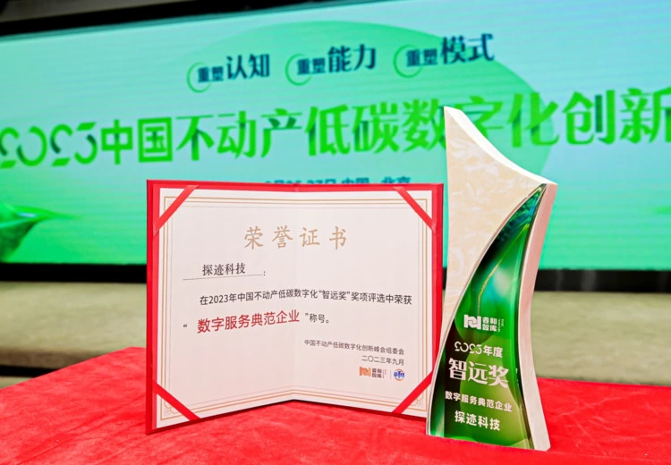 在本次峰会上,主办方发布了2023不动产低碳数字化“智远奖”盘点近一年来不动产资管领域的优秀企业和项目。探迹科技凭借丰富的地产行业数智化实践,荣获“智远奖”数字服务典范企业。
