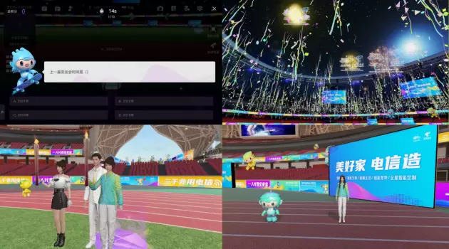 在电信亚运元宇宙中,用户可以身穿亚运服饰,在“大莲花”场景中与亚运吉祥物趣味互动、打卡合影;也可以手举火炬,参与元宇宙火炬传递仪式,切身体验亚运健儿的别样风采;还可以参与答题互动,在趣味问答中学习亚运知识、理解亚运文化;更可以邀请好友一起观赏亚运定制烟花,身临其境感受亚运浓厚氛围。在元宇宙技术支持下,实现了人人皆可游览“大莲花”,人人皆可试穿亚运服装,人人都是亚运体验官。