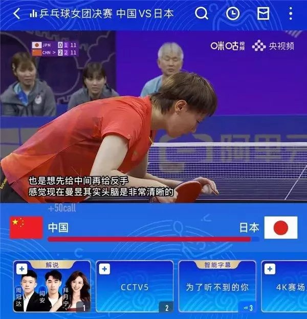 回顾杭州亚运会前半段赛程,中国亚运健儿表现亮眼:王者荣耀亚运版本中国队夺冠,斩获亚运电竞首金;中国泳军狂揽28金创亚运夺金新历史,“蝶后”张雨霏问鼎本届亚运“六金王”;中国网球队包揽亚运网球男女单打金牌,中国乒乓“天团”一举斩获亚运团体冠军与混双金牌……为了让广大观众与赛场精彩“同频共振”,中国移动咪咕为用户带来超高清、低时延、高流畅的亚运会观赛体验,通过业内首个支持AVS3编码标准的低时延分发系统,首次提供全国、全场次、主视角的低时延分发赛事直播,并通过5G-A网络基于业务智能感知的大带宽低时延保障能力,让人们能第一时间为夺金荣耀时刻欢呼喝彩。