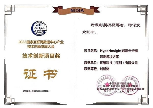 双料大奖:优维科技产品荣膺NIISA联盟2022年度2项“技术创新奖”!