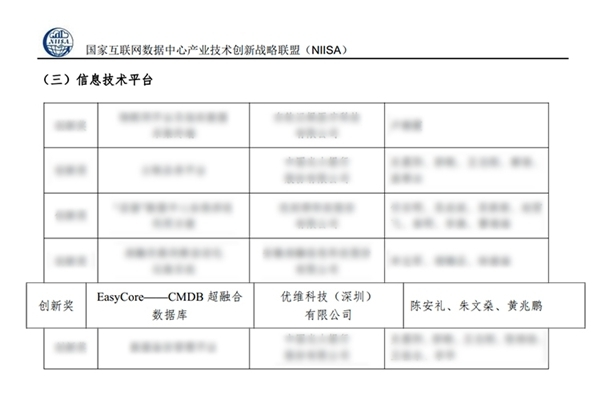 “EasyCore—CMDB超融合数据库”获技术创新奖
