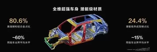 而被动安全方面,问界新M7车身结构匹配开模,重新改造焊装产线,更安全、更可靠。全车潜艇级热成型钢占比24.4%、高强钢和铝合金占比80.6%,全面优于现售50万级豪华品牌主流车型。同时引入CBS(Composite Body Solutions,复合车身解决方案)复合车身材料,有效提高车身刚度和碰撞安全性。此外,新车全系标配八个安全气囊、前排双预紧安全带,基于更多真实场景验证,为用户提供全方位驾乘安全保障。