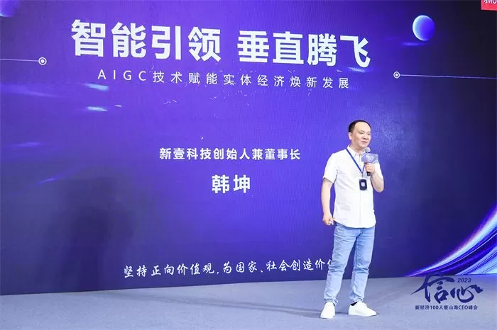 新壹科技创始人、董事长韩坤在演讲中介绍,新壹科技发布了国内首个社交领域视频大模型,叫新壹视频大模型,是以视频生成为核心的多模态AIGC大模型。他表示,“随着今年以来AIGC技术大爆发,我们都预言AIGC将把所有的行业重做一遍”,并认为AIGC必须和产业结合落地。