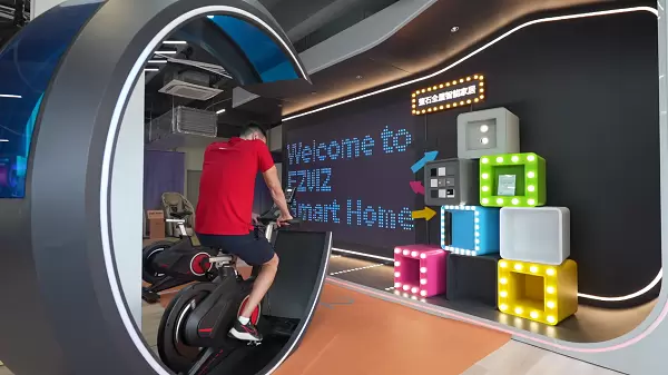 萤石入驻“云上亚运村APP-低碳社区”,以绿色共建者的身份积极响应本次亚运村绿色低碳活动。依托智能家居互联技术,萤石在展示区域内设置了动感单车点亮灯光墙的装置,只需要踩动动感单车,即可触发与墙面灯光的联动,墙面上会出现亚运吉祥物、西湖美景、萤石智能产品等图形,点亮萤石灯光墙即成功打卡,获得的低碳积分可以兑换耳机、音响、双肩包、徽章等低碳小礼品。