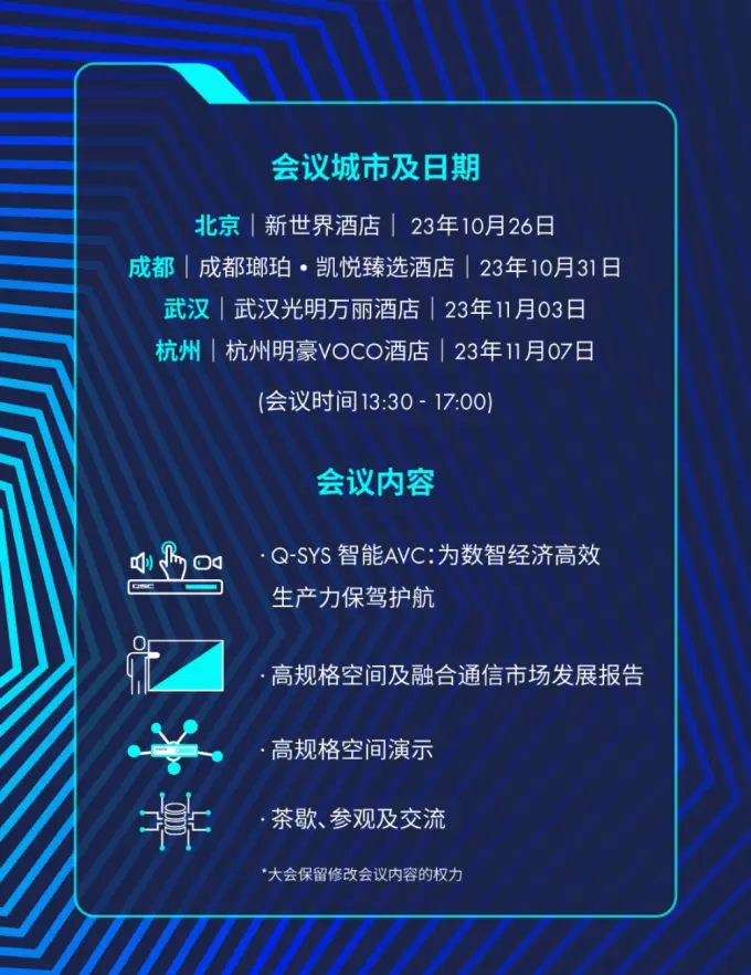 Q-SYS桥思数智AVC大会已经定档,创新音视频应用旋风即将于10月26日-11月7日在北京、成都、武汉和杭州掀起!