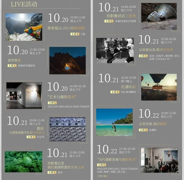 10月22日,摄影师赵灏钦为大家带来《北冥有鱼—海洋摄影》主题分享,领略海洋世界的神秘莫测,揭开世界真实面纱的一角、一窥浩瀚;同日,摄影师余嘉将与文物修复师们一同亮相《三星堆——我和修复师们的故事》分享会,随着三星堆新一轮考古发掘工作的开展,大批精美文物通过余嘉的摄影作品与世人见面。