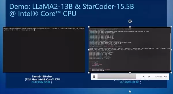 此外,在LLaMA2 130亿参数大语言模型、StarCoder 155亿参数代码大模型上,Intel酷睿处理器也都能获得良好的运行速度。