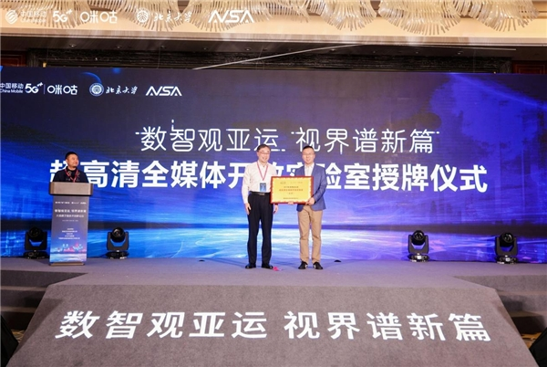 随后,北京大学科技开发部部长姚卫浩与咪咕公司总经理沈文海共同对“超高清元视觉技术创新实验室”进行了正式揭牌。双方将基于以往重大赛事的合作基础,结合院士团队前沿技术与咪咕公司的技术和产业布局,共同开展关键技术、核心装备的相关研究,并且将研究成果赋能生产。