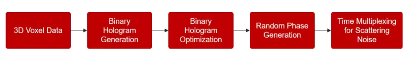 二进制全息图生成:针对每个要投影的3D体素,生成二进制全息图。这些全息图通过对相位和幅度进行调制,将3D体素的信息编码到光场中。