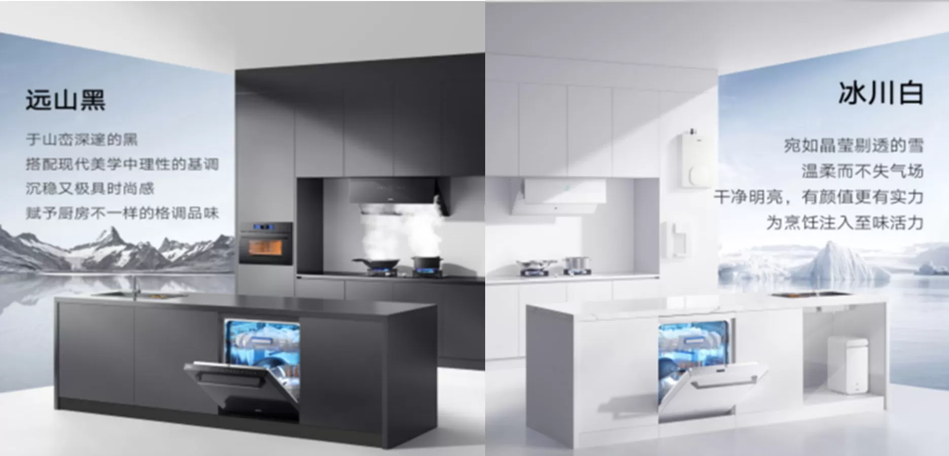 作为厨电行业的领军品牌,老板电器近日在电商渠道全新推出黑白双色灵犀全自动套系,为追求高颜值和智能化的用户提供新选择。黑色套系名为“远山黑”,套系包括烟灶、蒸烤炸一体机和洗碗机。远山黑就像山峦深邃的黑,沉稳又极具时尚感,为厨房赋予了不一样的格调品味。白色套系名为“冰川白”,包括烟灶、洗碗机、燃气热水器、净水器和管线机。将自然元素融入现代设计之中,创造出一种独具魅力的视觉效果。它既有冰川般的冷静与沉稳,又有白雪般的温柔与纯净,给人一种高雅而宁静的感觉。这种配色不仅赋予了烟机一种优雅的气质,也使得厨房的整体风格更加统一和协调。无论何种装修风格,都能完美融入其中,为厨房增添一抹时尚的色彩。