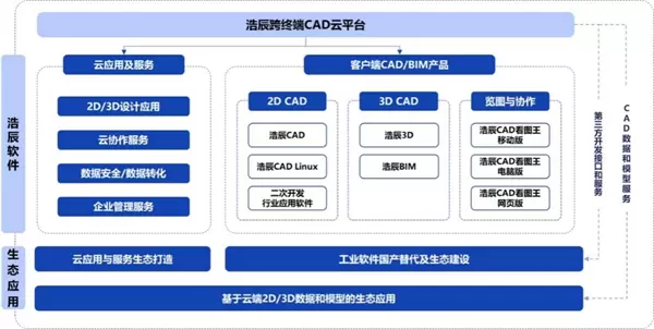 同时浩辰软件将打造跨终端CAD云平台体系,提供基于云端数据和模型的2D/3D数字化创新设计和应用,集成包括浩辰CAD、浩辰3D、浩辰BIM在内的研发设计软件,实现各终端数据和模型上云和互通。此外通过开发接口和服务,将广泛的第三方应用纳入云平台体系,打造业内云应用与服务整体生态。浩辰CAD云平台将贯穿从设计、施工到运维,从设计、仿真到制造等全环节,为用户提供全周期一体化服务。