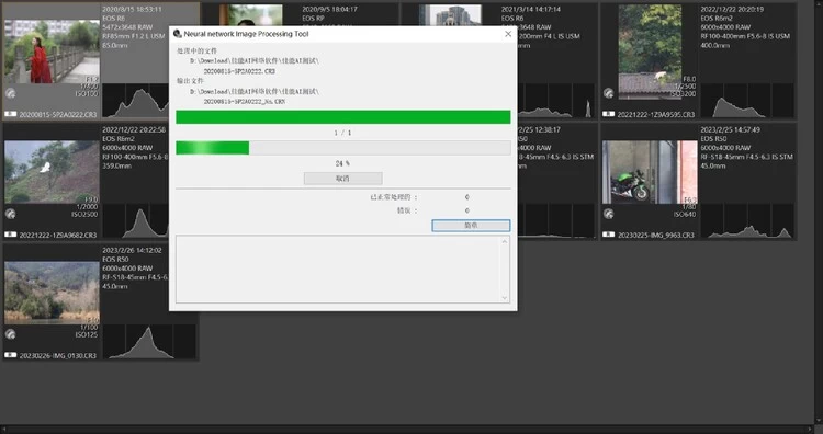 Neural network Image Processing Tool以DPP插件形式存在。在DPP中选定佳能的CR3文件后,点击打开插件,片刻等待过后。