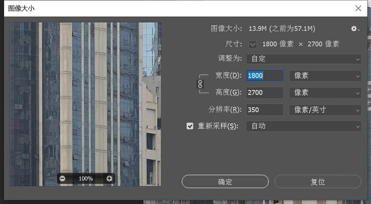 这里我们将前面的解放碑图片在PS中缩小,以模拟一张小图。