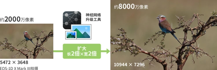 神经网络图像处理工具展示了降噪、去马赛克和镜头优化功能。而神经网络升级工具,可以把图片长宽扩大两倍,获得四倍分辨率的图像。