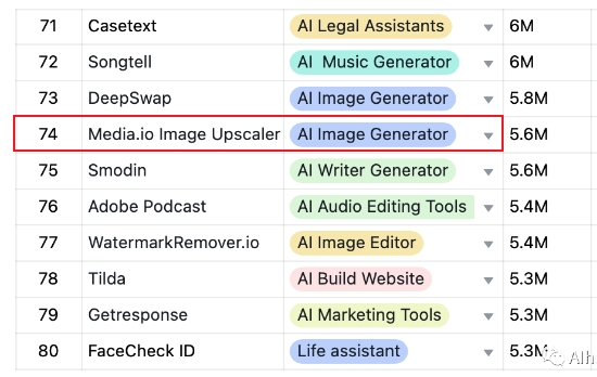 榜单显示,OpenAI、微软等海外巨头仍然保持AI应用趋势引领,国内以万兴科技为代表的AI应用企业在激烈的竞争格局中领跑。