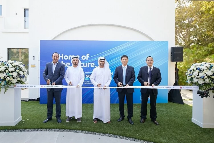 阿联酋du CEO Fahad AI Hassawi、华为高级副总裁、运营商BG总裁李鹏、华为无线网络产品线总裁曹明等出席了启动仪式