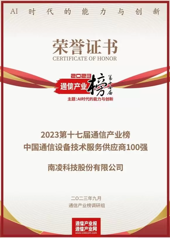 备受行业认可!南凌科技荣登中国通信设备技术服务供应商百强榜