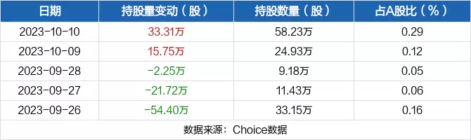 近五日持股量数据: