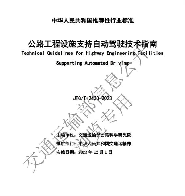日前,交通运输部发布《公路工程设施支持自动驾驶技术指南》(JTG/T 2430-2023,简称《指南》),对相关方面的技术提出了规范。