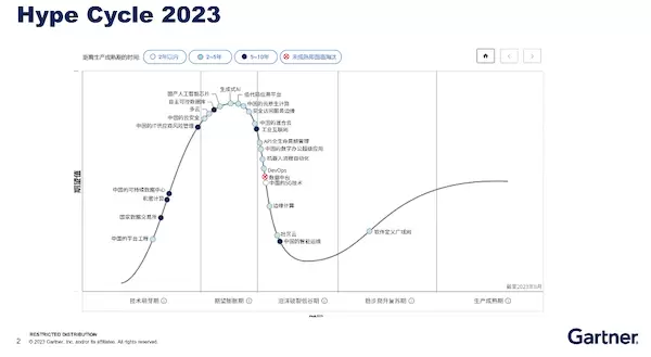 在近期Gartner发布的中国ICT技术成熟度曲线中,生成式AI与云原生恰恰均处在2-5年的期望膨胀期阶段,其中生成式AI更是处在曲线的峰顶,这两项当下热门的技术正在为大量企业带来全新变革。Gartner也专门在不久前召开媒体会,为大家分享了这一技术成熟度曲线背后的逻辑。