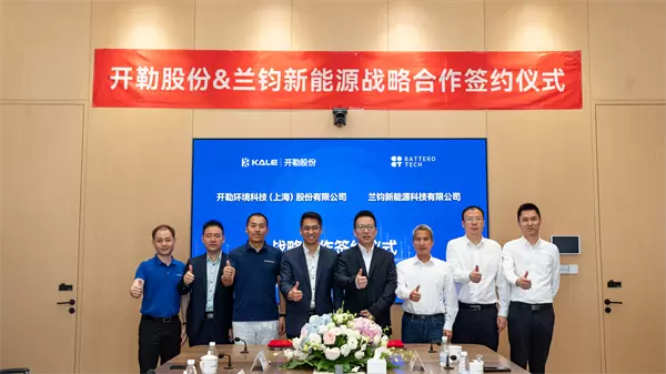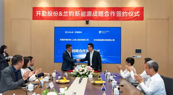 10月10日上午,开勒环境科技(上海)股份有限公司与兰钧新能源科技有限公司基于双方在工商业储能领域高度一致的战略共识,正式达成合作协议。
