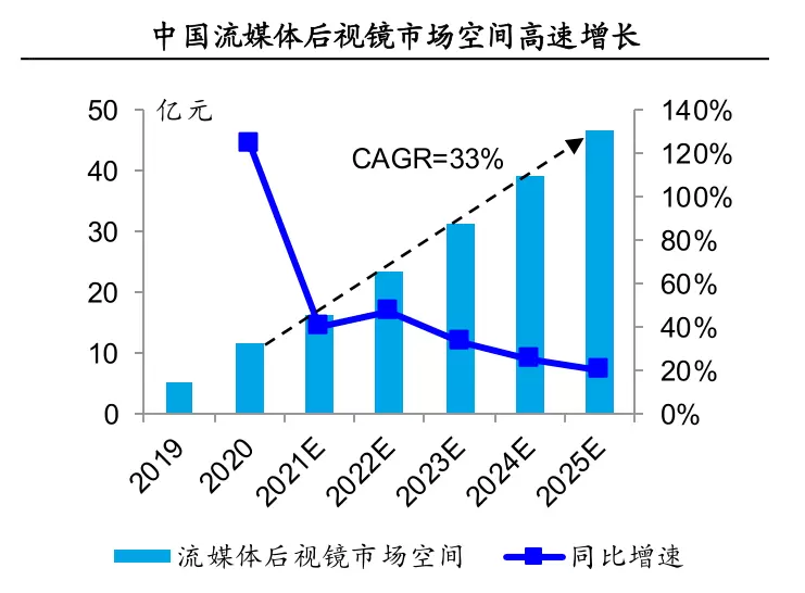 据相关数据预估统计截至2025年中国流媒体后视镜市场空间将达到47亿元。预计2025年可达 30%,实现复合增速33%。而在市场研究机构Technavio发布的报告中显示,全球电子外后视镜市场规模将在2020年至2024年间以年均复合增长率超过20%的速度增长,预计2025年国内电子后视镜(内+外)总体市场规模将超过60亿元。