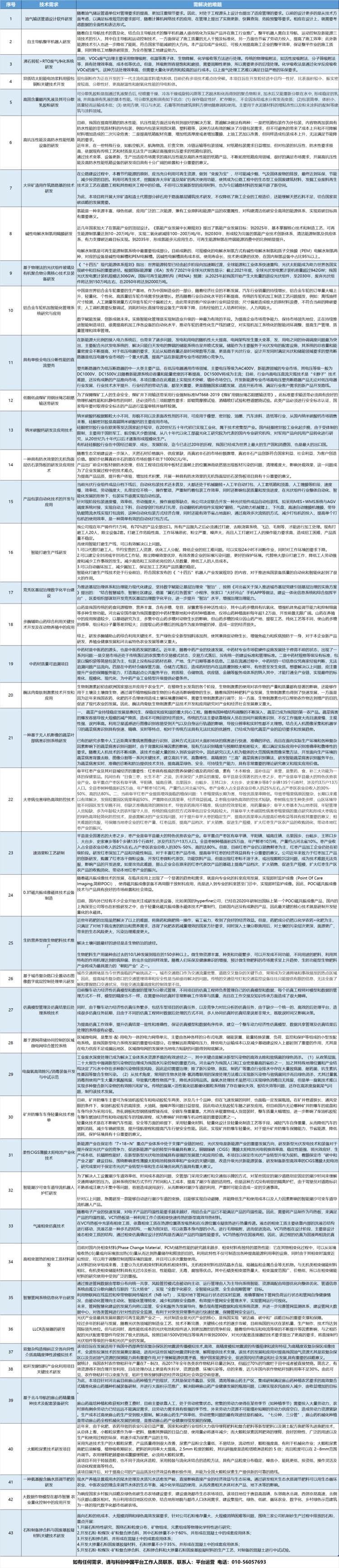 本次“揭榜挂帅”项目聚焦先进制造业、新能源、新一代信息技术、生物医药、新材料、节能环保、现代农业等多个行业领域,“寻觅”最优解决方案,解决43大难题,包括:自主导航整平机器人研发,异质结太阳能电池浆料用银包铜粉 关键技术开发,高固含量醋丙乳液及其可分散乳胶粉研发,高抗压性能及高防水性能纸箱设备的研发,碱性电解水制氢用隔膜研发,低烟低卤煤矿用钢丝绳芯阻燃输送带研发,智能打磨生产线研发,一种基于无人机影像的蔬菜叶部病害识别系统研发,基于城市复杂路口全景动态图像数字底层控制处理单元研发,智慧管网系统信息化平台研发等。