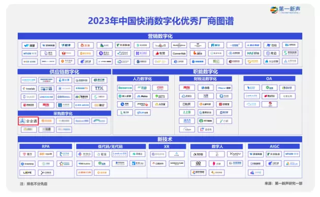 10月8日,第一新声研究部正式发布“2023年中国快消数字化优秀厂商图谱”,企企通凭借在采购与供应链数字化领域的创新技术与实践应用成功入选。