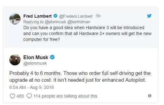 在本周三的最新一条推文中,马斯克表示自己打算将特斯拉私有化,同时承诺之前为Autopilot功能额外支付过费用的车主可以免费升级新一代自动驾驶系统,但并未详细介绍硬件升级的方式。