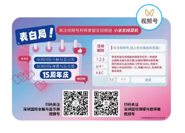关注视频号,送上您对展会最真挚的祝福,送小米无线耳机。