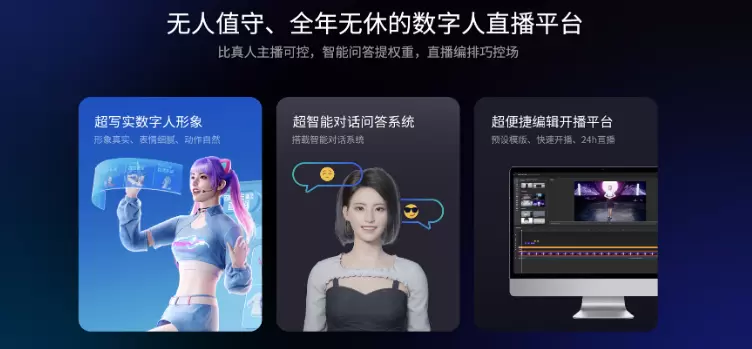 数字人24小时不间断的直播,可实现长时间、连续不断的内容输出,同时不受主播语言、能力和精力限制,相较于真人主播,能适用于海内外不同平台、不同地域、不同品类的直播。