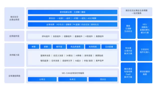 而在今年,网易云信更进一步,对自身能力进行了全面梳理,演进出了一整套为中国出海企业解决各类痛点的、一站式的体系化产品和解决方案,致力于成为出海新浪潮中的坚实助力者。