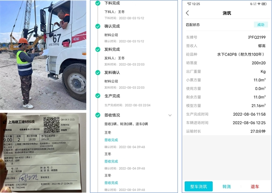 自混凝土物料信息化管理使用以来,简化了现场材料管理人员的下料流程,提高了下料数据的精确度,从而从根源上确保了现场桩基混凝土不打错,确保了桩基施工的质量。同时首次实现了施工总包单位与材料供应单位全过程数字化的混凝土供应流程,延伸了总承包单位的施工管理半径。