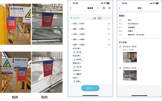 同时,为保障基坑开挖过程中的安全性,项目部在各基坑入口以及各层支撑内设立巡检打卡点,各巡检打卡点形成一条规定的巡视路径,由每日值班人员根据巡视路径扫码打卡巡检。及时发现基坑隐患,第一时间进行处理。