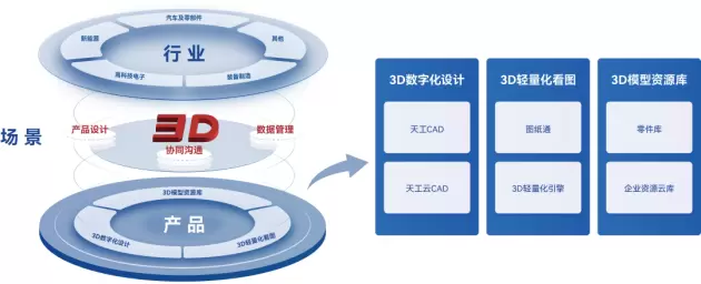 经过十多年的技术积累,从2015年左右开始,新迪数字走上了自主工业软件的研发与探索之路,围绕着三维CAD应用先后推出3DSource零件库、3D轻量化引擎、图纸通等多款SaaS工业云软件。