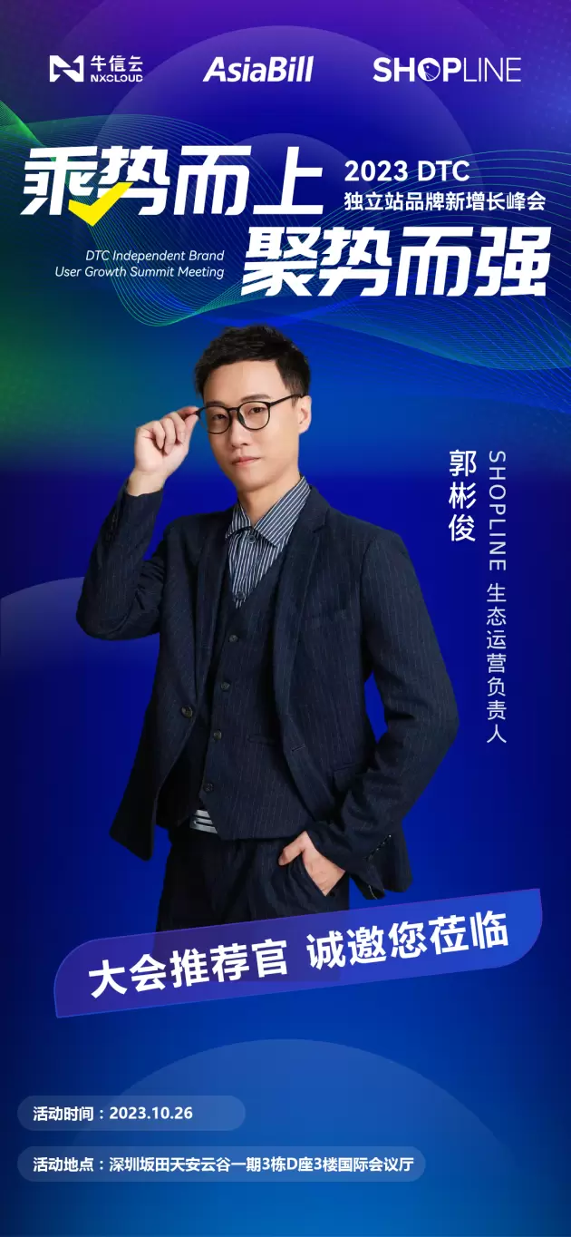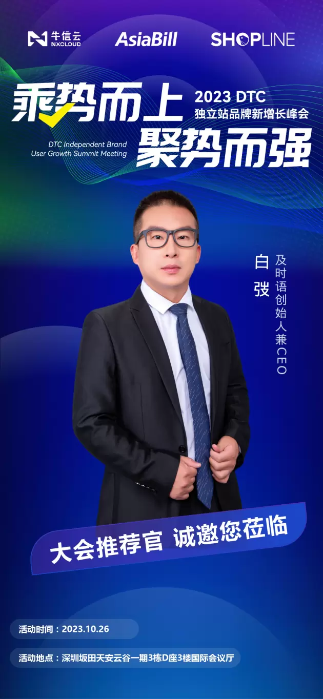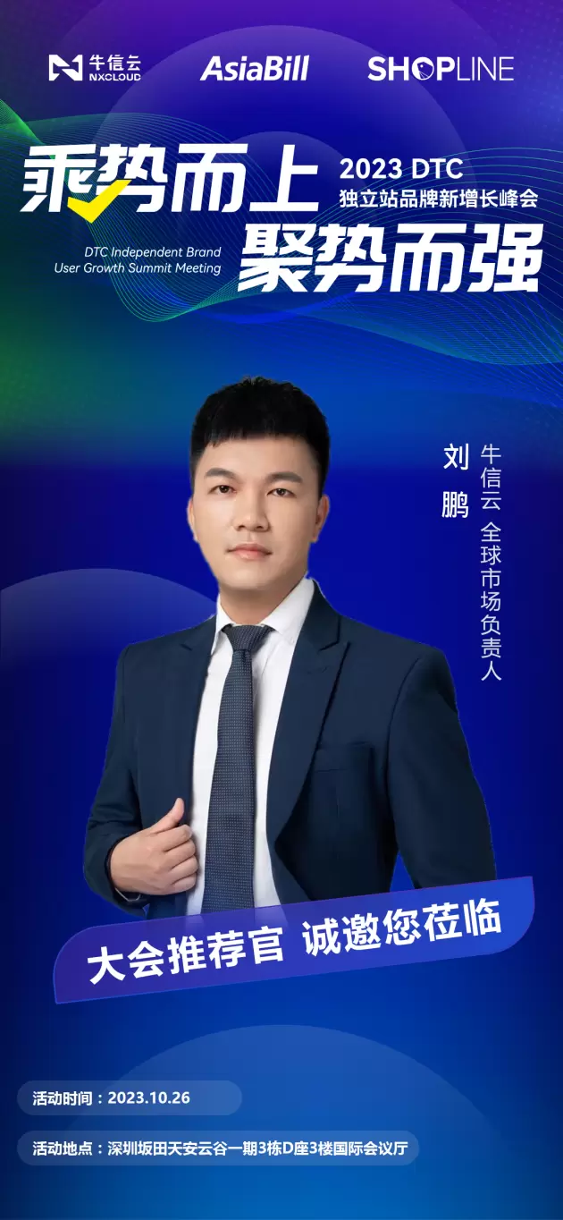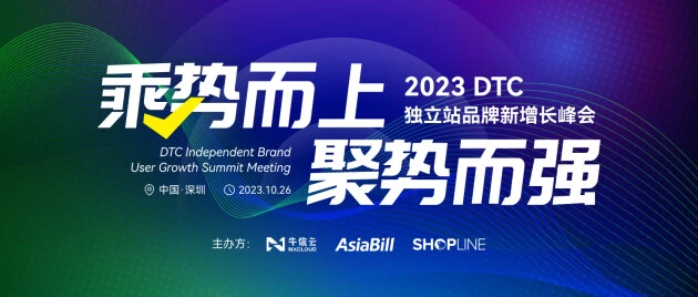 乘势而上,聚势而强!在独立站发展热潮之下,持续深化独立站发展链路,聚合更大的品牌势能。10月26日,牛信云、AsiaBill、SHOPLINE将携手共同主办“2023 DTC独立站品牌新增长峰会”,聚集独立站各类型服务商,精准触达独立站客户群体,共同搭建优质的学习、交流平台,形成大湾区独立站强势合力,共探独立站行业的发展趋势、市场机遇和挑战,推动品牌高效增长。