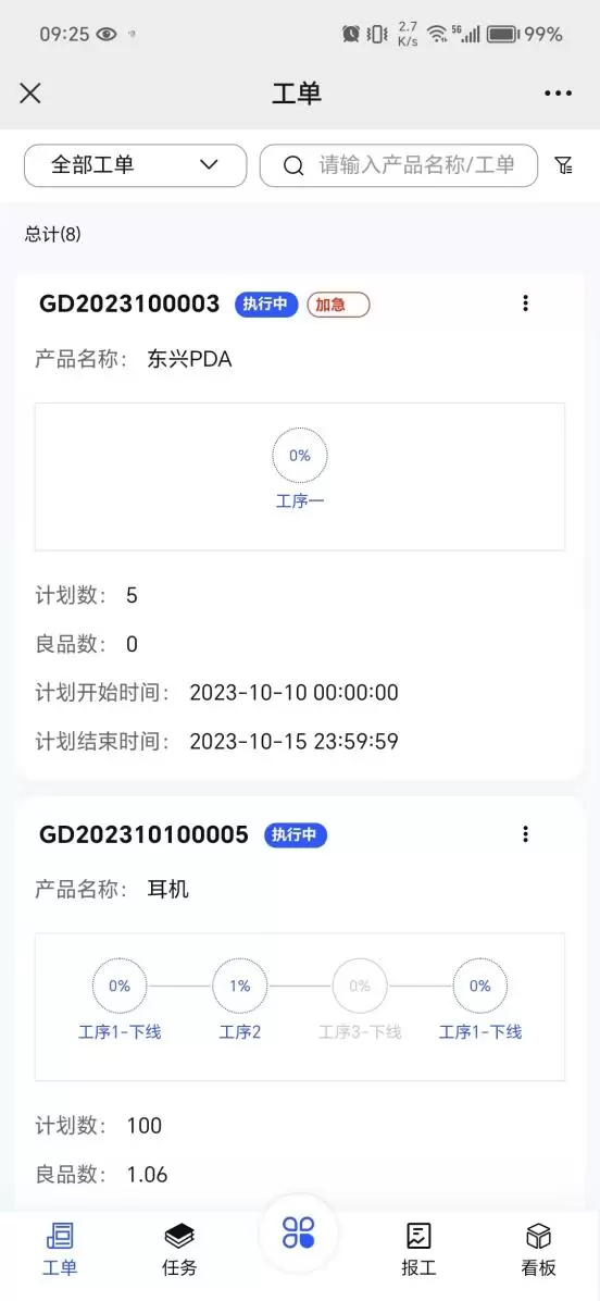 1. 实时监控生产过程:MES轻量版通过数字化的方式,实时监控和追踪生产过程,让企业随时了解生产线上的实时情况,包括工单进度、任务情况、报工明细等,从而能够及时发现问题并进行调整,避免出现生产延误或质量问题。