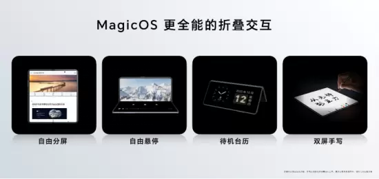 荣耀MagicVs2搭载荣耀MagicOS7.2系统,为折叠屏手机带了进一步的深度优化,让荣耀MagicVs2在手感比肩直板旗舰的同时,也能拥有比直屏手机更强大、更便捷、更智能、更高效的娱乐生活、办公操作体验。