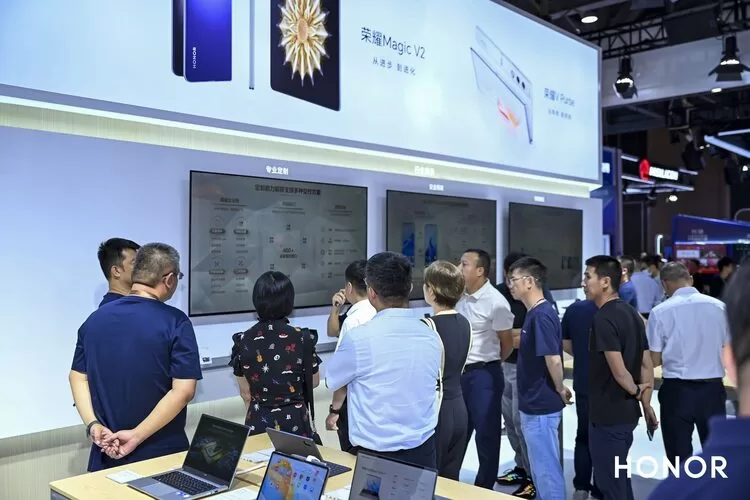 本届大会展览现场,荣耀100平米的现场展位通过设立全场景+终端产品体验区、折叠屏系列产品及黑科技展示区、行业解决方案区和HONOR Talents作品区,重点展示自身最新技术能力及创新成果。