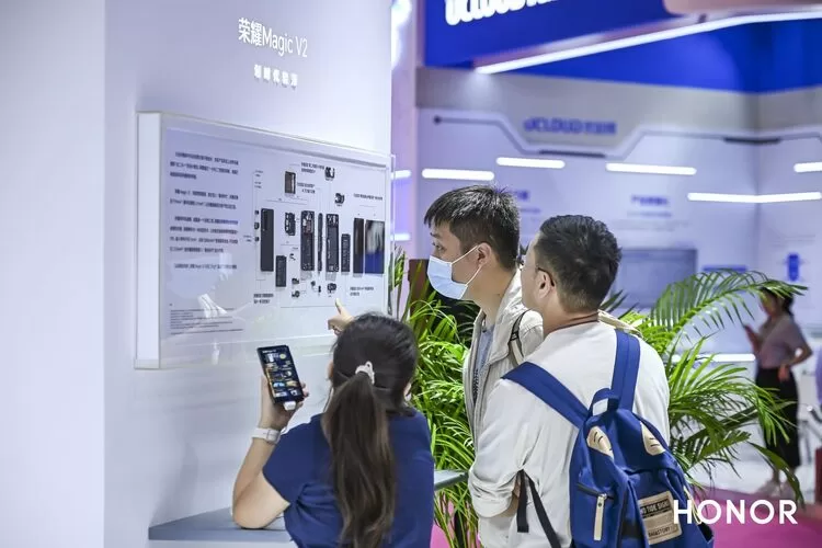 在全场景+终端产品体验区,荣耀展出包括荣耀Magic V2系列、荣耀V Purse系列、荣耀Magic5系列、荣耀90系列、荣耀X系列和畅玩系列、可穿戴设备、PC及平板等在内的多款终端产品。其中,荣耀畅玩40S因在市场同配置5G手机中具有明显的品牌和价格优势,入选中国移动总部“千元5G手机包销统一操盘活动"并作为爆款主推产品。