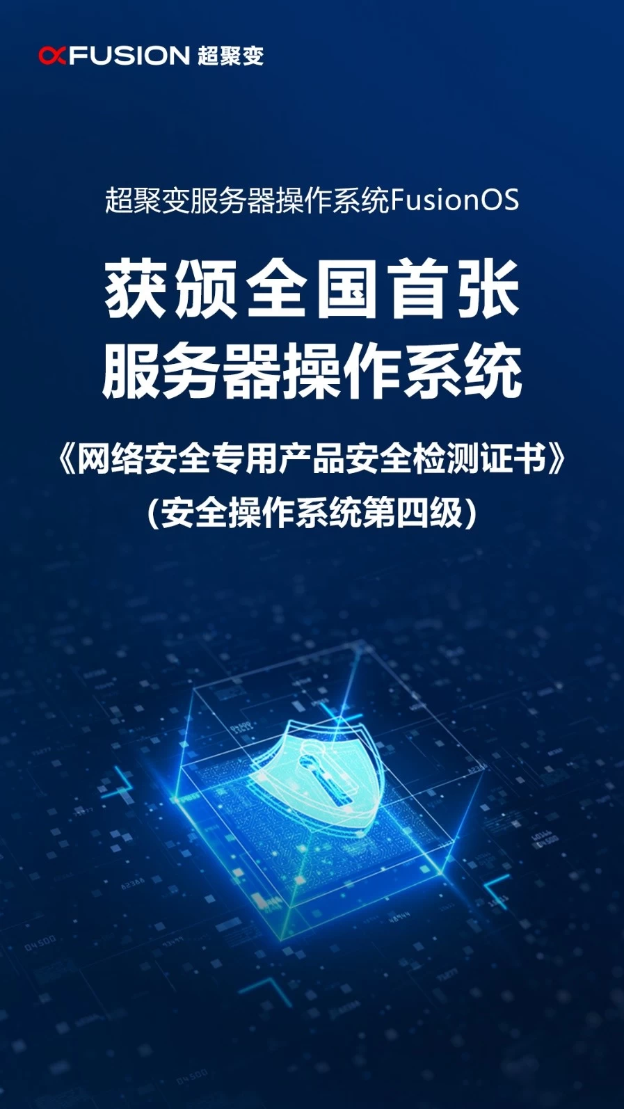 超聚变获颁全国首张服务器操作系统《网络安全专用产品安全检测证书》