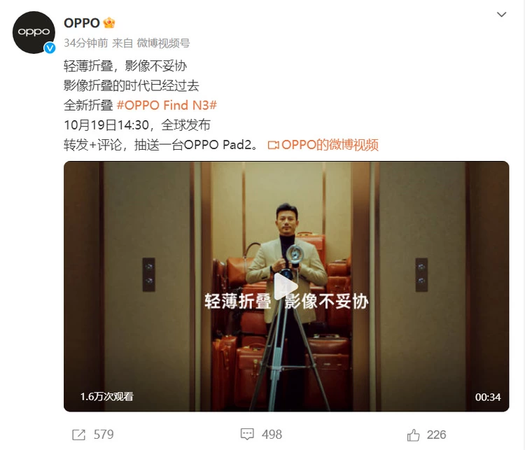 10月19日亮相!OPPO发布Find N3对比样张,真实效果很难有对手