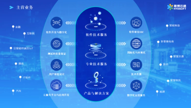 慧博云通成立于2009年,致力于成为一家国际化、专业化、创新型的综合型信息技术服务提供商。慧博云通业务遍布全球,分支机构落地7个国家,20多个国内城市。基于对各行业客户业务场景的理解,慧博云通以软件技术专业人才为载体,为国内和国际客户提供涵盖咨询、设计、开发、测试、运维等全周期的信息技术服务,已为众多世界 500 强及大型企业客户实现数智化转型。经过十余年的发展与积累,慧博云通凭借自身扎实的技术实力在软件技术服务领域建立了丰富的技术积累。截至目前,慧博云通在云计算、大数据、人工智能、物联网方面的相关软件著作权数量共计达到247个。