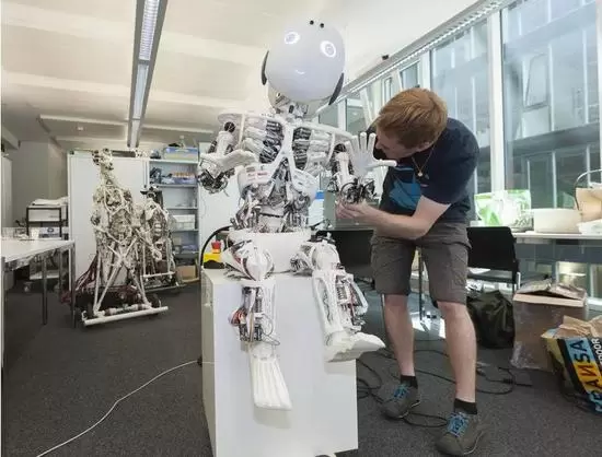 一名科学家在苏黎士大学的人工智能实验室里调试一台名叫ROBOY的人型机器人(16.680,0.48,2.96%)。EThamPhoto—Getty Images