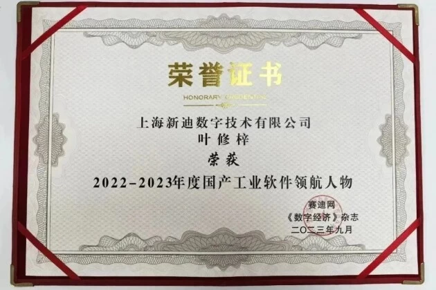日前,工信部中国电子信息产业发展研究院直属单位赛迪网和工信部主管《数字经济》杂志社联合发布“2022-2023年度产业数字服务案例及创新成果”,上海新迪数字技术有限公司创始人叶修梓博士荣获“2022-2023年度国产工业软件领航人物”。