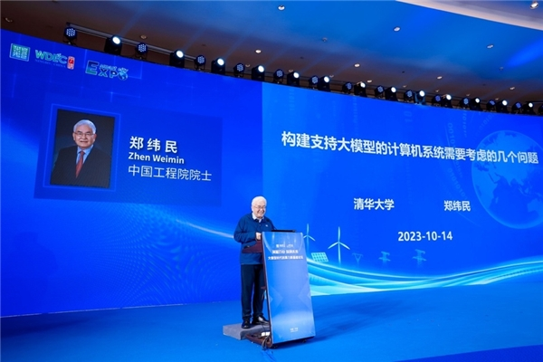 在院士观点演讲环节,中国工程院院士郑纬民作《构建支持大模型的计算机系统需要考虑的几个问题》的主题演讲。