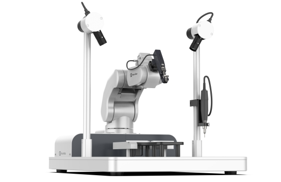 针对科研动物实验中,电极植入手术操作难、手术定位不准确等问题,脑虎科技自主研发了一款智能手术机器人,可以基于标准大小鼠脑定位图谱的3D脑区模型,最优化计算手术路径,实现“所想即所得”的定制化;双目视觉识别定位结合360°全方位串联机械臂,实现“所见即所达”的易操作;系统精度达200μm,最小步尽量50μm,实现可指定脑区的精准到位;统一接口快换装置,自由切换颅钻、植入仪、光纤、微型注射器。