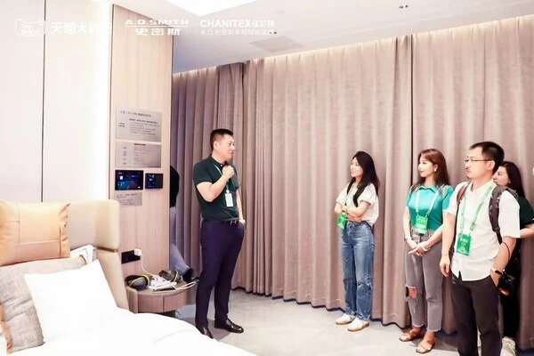 达人们认真聆听讲解,并就感兴趣的问题与张总互动交流,在参访中感受了A.O.史密斯在研发之路上步履不停、精益求精的探索精神,了解了A.O.史密斯如何通过不断创新来推陈出新,为用户打造"好风好水健康生活"。