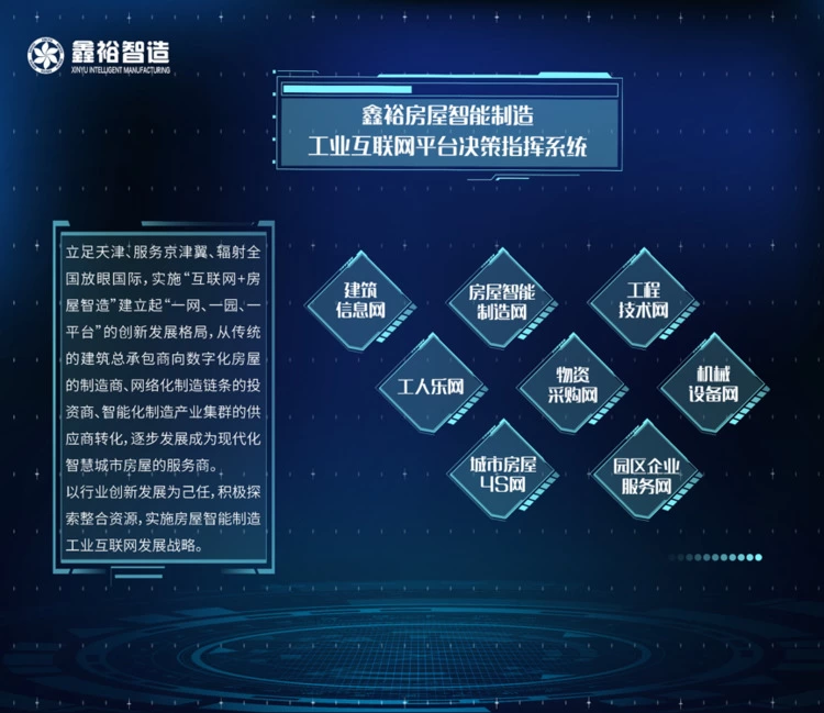 为此,在钟鑫的带领下,鑫裕智造重点规划了“鑫裕房屋智能制造互联网平台”,并划分了八大主题模块,即数字建造平台、建筑设计平台、金融支付系统、设备租赁平台、管家服务平台、物资交易平台、工人管理平台、建筑数据湖,帮助企业全面建成建筑行业的工业互联网体系,打造新兴的发展模式。