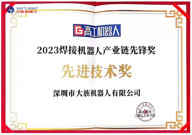 大族机器人凭借在协作型焊接机器人领域的持续创新,斩获“2023焊接机器人产业链先锋奖——先进技术奖”,成为引领协作型焊接机器人向前发展的关键力量之一。